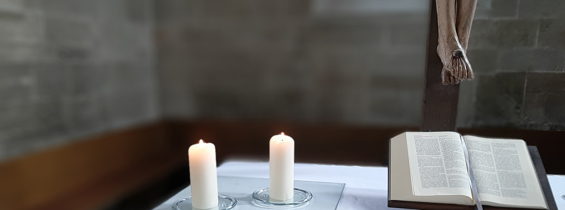 Die Kirche ist täglich geöffnet von 10-18 Uhr. Hier können Sie einfach für sich Stille suchen, Abstand zum Alltag gewinnen oder eine Fürbitte-Kerze für jemanden anzünden.